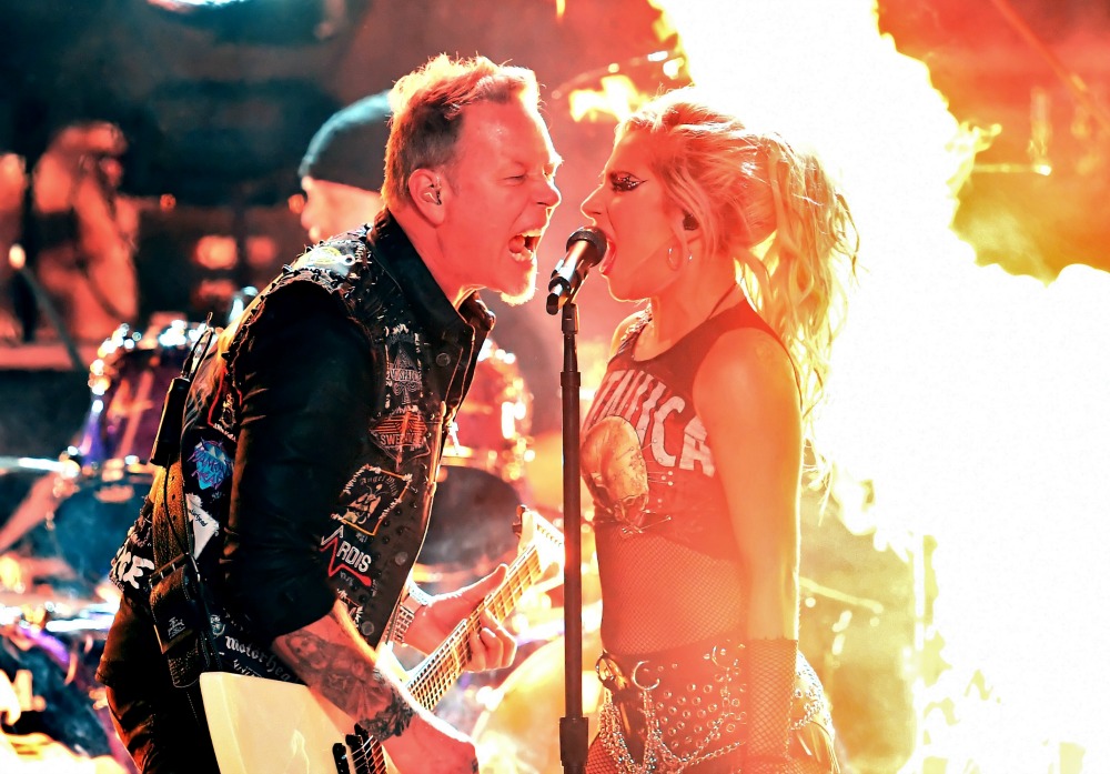 They began ‘Moth Into Flame’ from Metallica’s Hardwired… to Self-Destruct album with James Hetfield’s mic not working properly and Gaga pulling moves last seen in Showgirls.